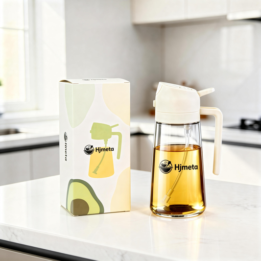 Hjmeta® 2-in-1 Glass Oil Sprayer & Dispenser – 470ml Refillable Kitchen Spray Bottle with Pour Spout (Creamy White)