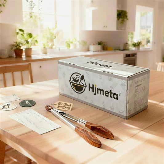 Hjmeta® 12" Walnut Wood Kitchen Tongs – Cook, Serve & Grill with Confidence